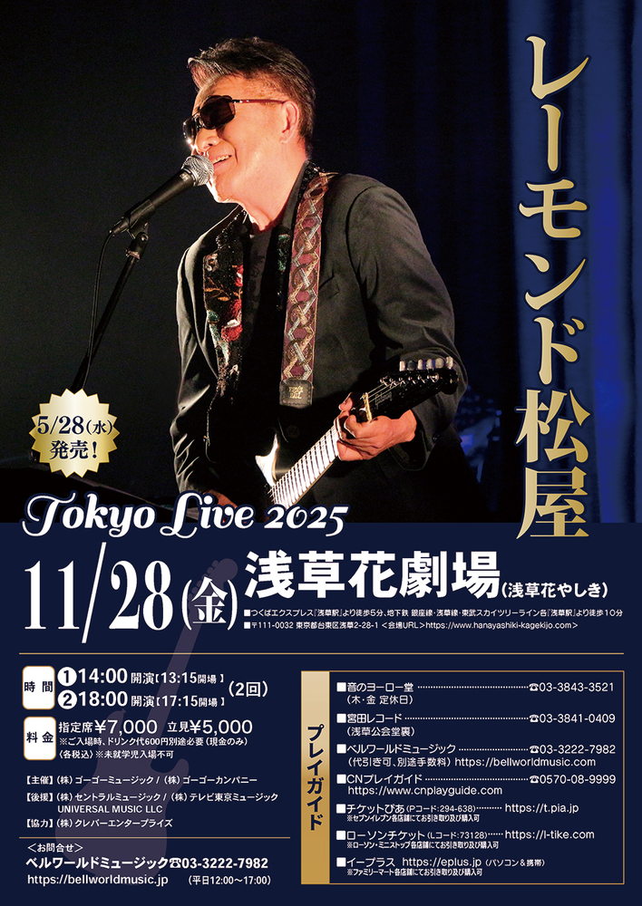 各入場料(税込):指定席 ¥7,000、立見 ¥5,000